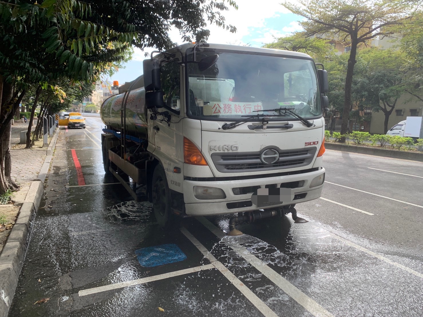 ▲台南市環保局一偵測出嚴重的塵土飛揚,就會出動灑水車來降低汙染。(記者黃雋淮翻攝)