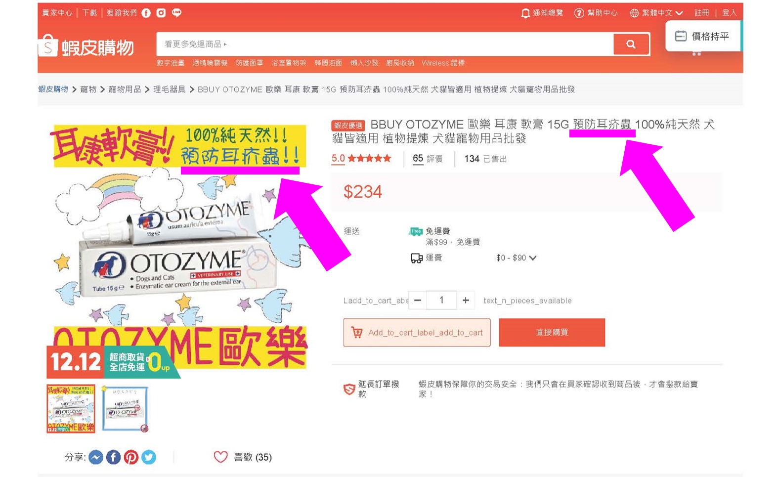 動保處處長吳名彬指出,依據《動物用藥品管理法》第19條之1第3項規定,非動物用藥品的標示、宣傳或廣告不可以具有預防、治療動物疾病或促進、調節動物生理機能相關字眼,違反者可依法處新臺幣20~100萬元。該業者因在蝦皮平台販售非動物用藥品之犬貓清耳產品時,刊登之廣告含有「預防耳疥蟲、治療犬貓外耳道炎」等宣稱療效字眼,遭動保處裁罰新臺幣20萬元。